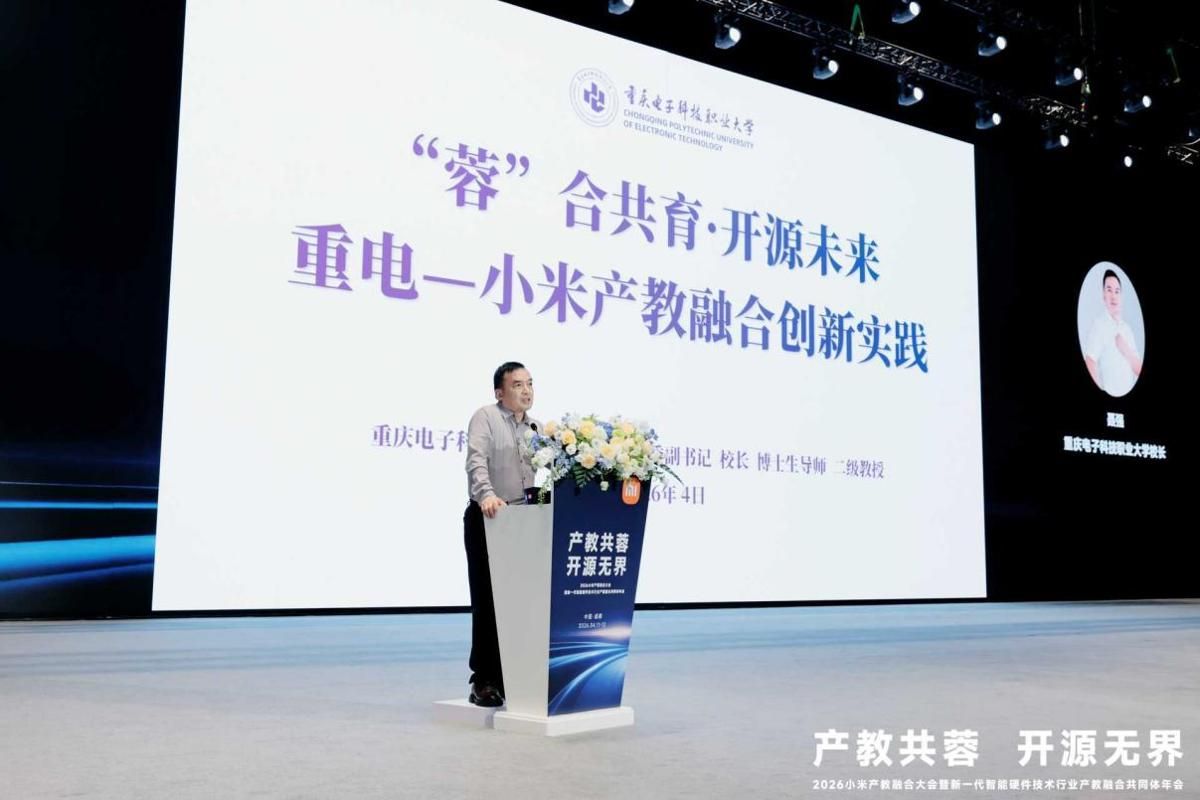 4月11日至12日,“产教共蓉・开源无界——小米产教融合大会暨新一代智能硬件技术行业产教融合共同体(2026)年会”在成都科幻馆隆重举行,中国科学院院士黄维,中国工程院院士贺克斌、潘复生出席大会并致辞,教育部职业教育发展中心主任林宇作了讲话,中国科学院外籍院士王中林作了主旨报告。我校党委副书记、校长聂强教授应邀出席大会并作主题报告,同时学校成功入选小米首批OpenVela教育社区牵头校,在授旗仪式上正式接旗,标志着我校与小米集团产教融合合作迈向新高度。
